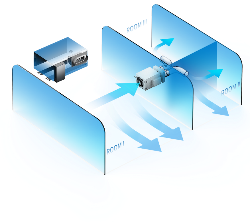 VAF透過空氣過濾與正負壓氣流的設計,精準地控制氣流方向,讓空氣中的污染從規劃的路徑快速排出,且經過設計的氣流能夠有效阻隔外界空污入侵,在不影響空氣品質的狀態下,讓過濾過的空氣緩和且有效率地擴散至所有空間。